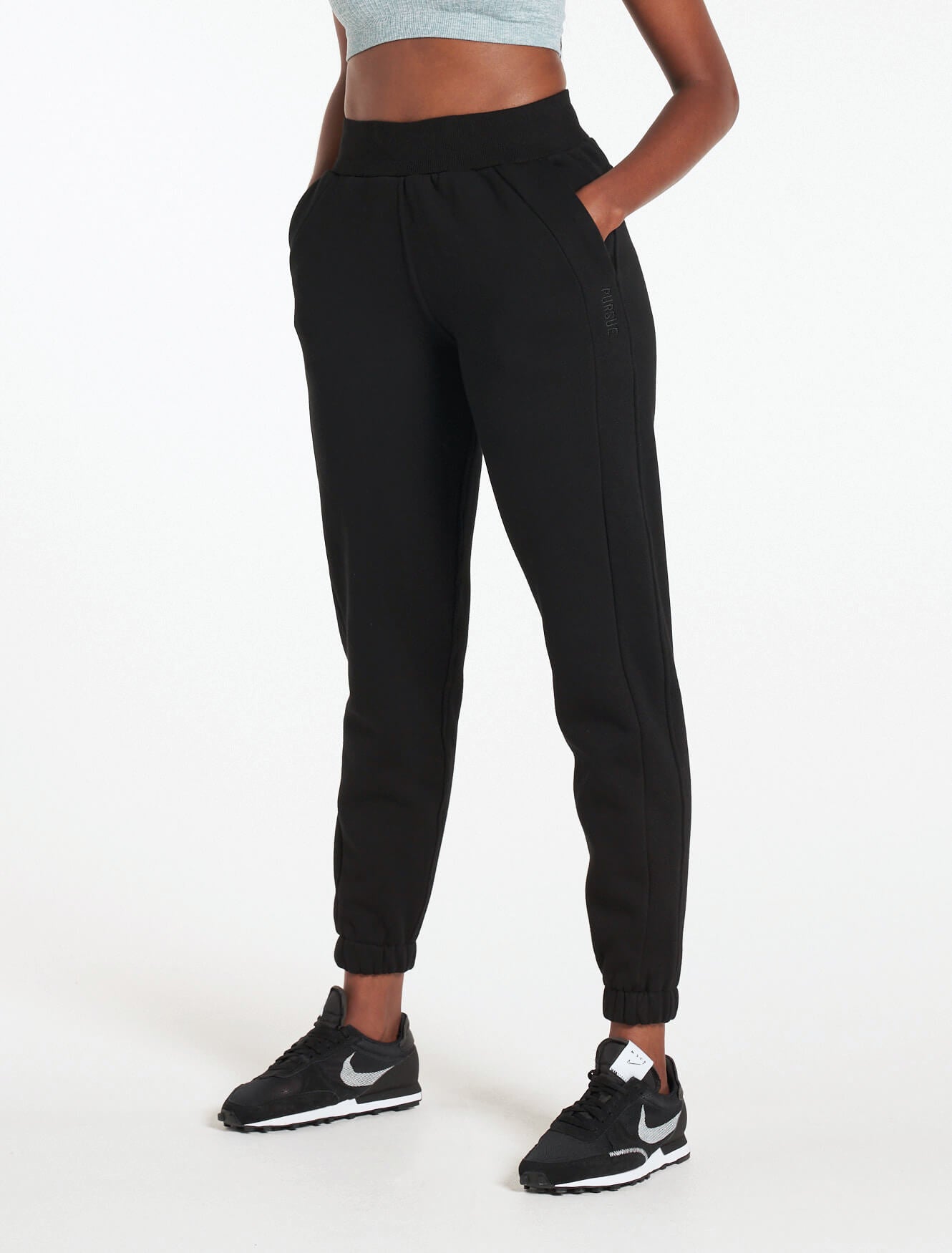Carefully constructed with a super soft cotton blend fleece for a minimal look. Featuring a flattering high waisted, tapered fit, side leg panels and a drawcord elasticated waist. The Pursue Fitness Select Bottoms are the perfect addition to complete your outfit, for everyday comfort, lounging and layering. Whether you're on your way to the gym, or relaxing on your well deserved rest day.